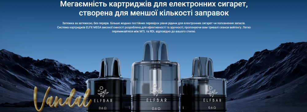 Пристрій сумісний із картриджами ELFX MEGA XL, доступними у ємності 2 мл, 5 мл та 10 мл, що дозволяє вибирати оптимальний варіант для будь-якого стилю паріння. Ви можете використовувати сольові набори для самозамісу з VG/PG 50/50, отримуючи м’який та насичений смак, насолоджуючись кожною затяжкою.