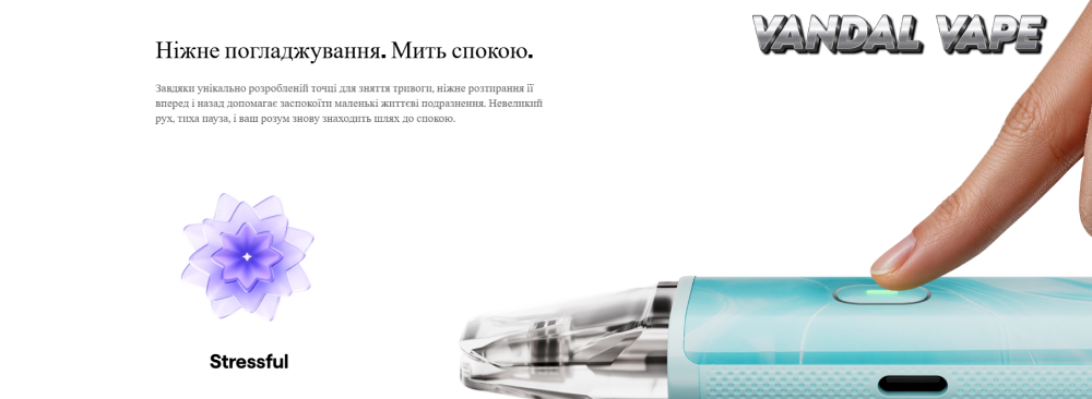 • Увімкнення пристрою відбувається автоматично - достатньо зробити затяжку, додаткові кнопки для запуску не потрібні.