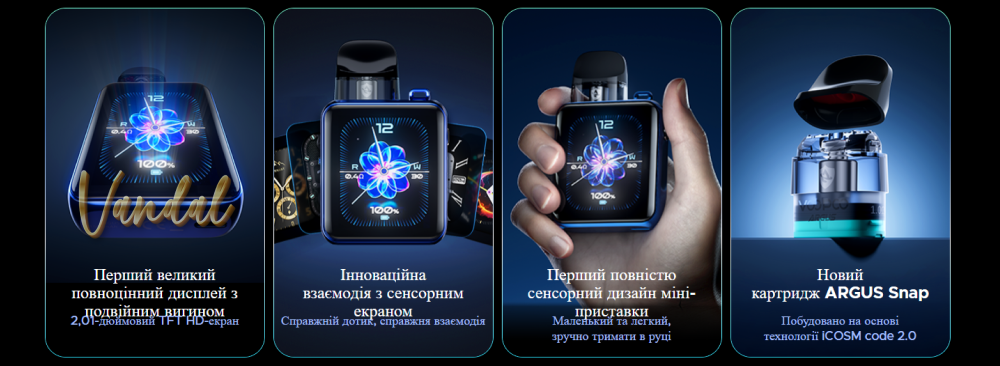 - Підходить для переходу з одноразок та айкоса, а також для апгрейду з дешевших pod-систем до преміального рівня.